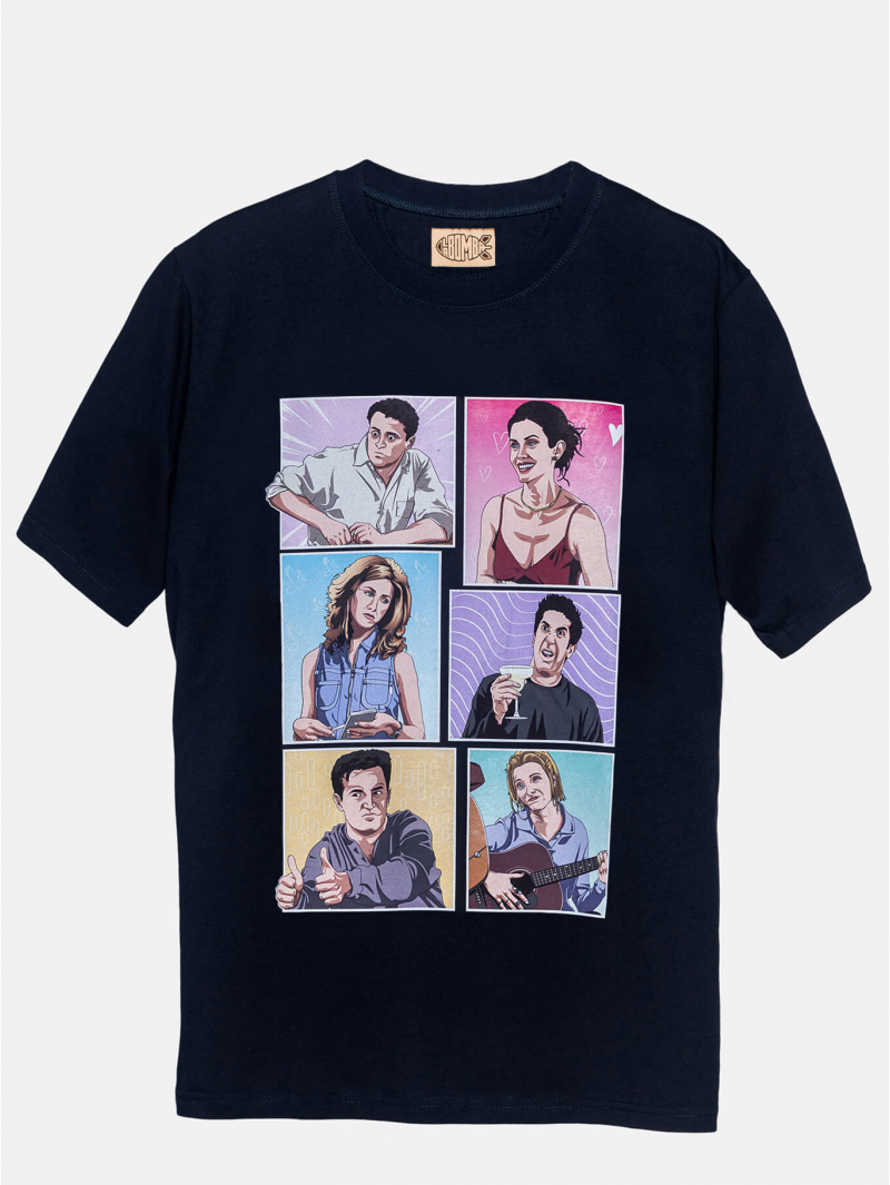 Футболка с принтом "FRIENDS" от команды LaBomba Wear свободного кроя черного цвета.